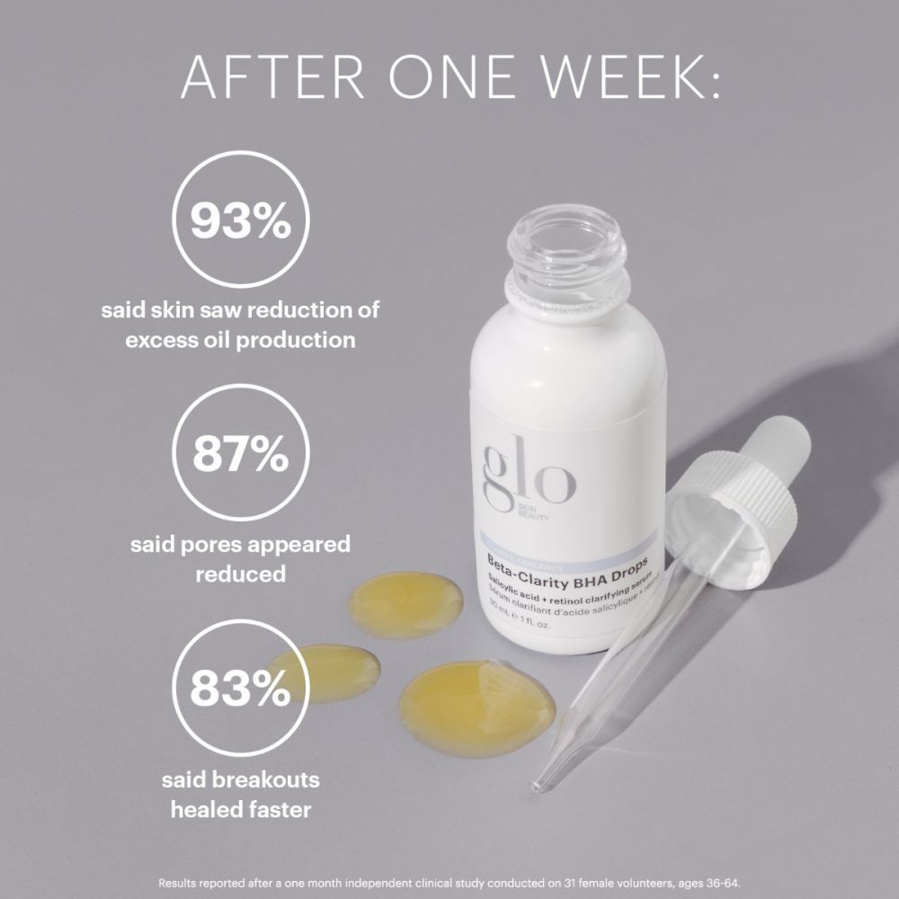 Targeting uneven skin tone and texture, breakouts and blemishes, while stimulating cell turnover, Beta-Clarity BHA Drops are loaded with the clarifying and smoothing power couple salicylic acid and retinol. Clinically proven to prevent and heal breakouts, reduce the appearance of pores, and improve skin clarity after just one week of use, this non-comedogenic clarifying serum is your overnight skin detox treatment. This serum for oily skin can eliminate impurities, rebalance excess oil, and accelerate cell renewal and collagen production, while reducing the appearance of fine lines, for a clearer, smoother, brighter complexion.